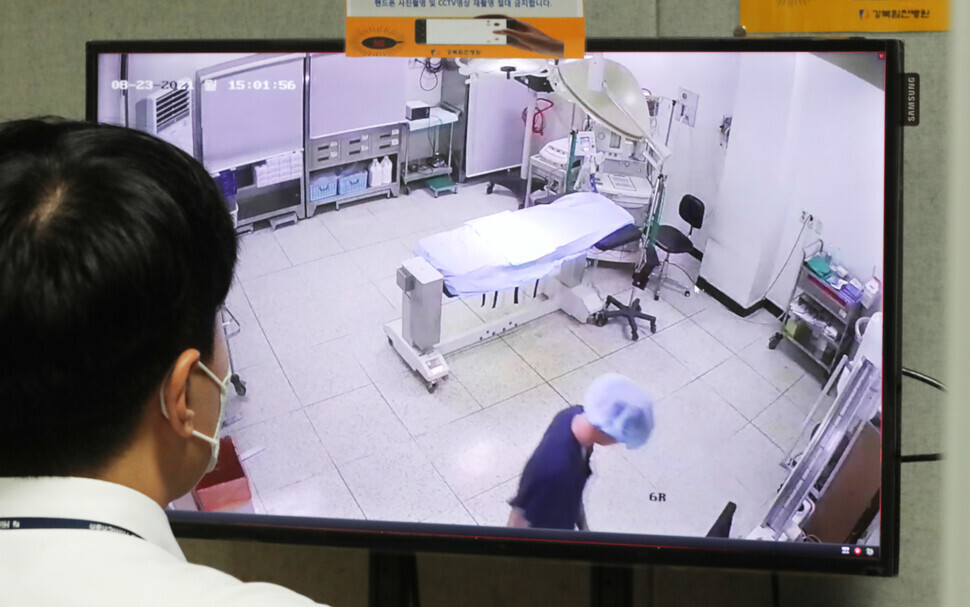 지난 23일 오후 서울 도봉구 강북힘찬병원에서 직원들이 수술실 폐회로텔레비전(CCTV)를 점검하고 있다. 연합뉴스