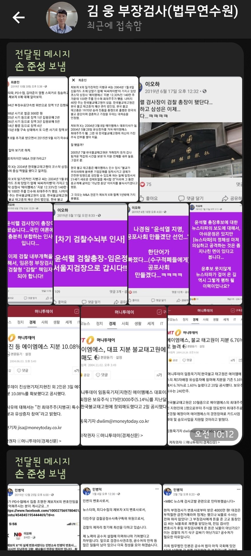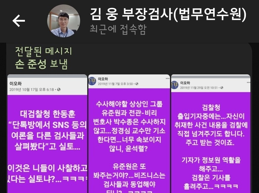 손준성에게 받은 파일 전달한 메시지 나왔지만