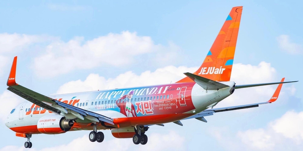 지민 생일 축하 사진과 문구로 장식된 제주항공 비행기 [사진 관찰자망. 재판매 및 DB 금지]