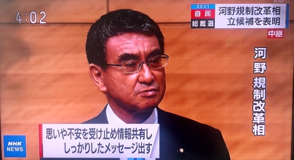 오는 29일 투·개표가 이뤄지는 자민당 총재 선거는 고노, 이시바, 기시다 간 3파전이 될 것이라는 관측이 우세하다.