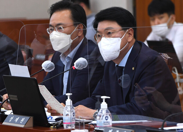 열린민주당 최강욱 의원이 6일 서울 여의도 국회 법제사법위원회에서 열린 ''윤석열 전 검찰총장의 고발 사주 의혹''과 관련한 현안 질의를 위한 전체회의에서 발언하고 있다. 연합뉴스