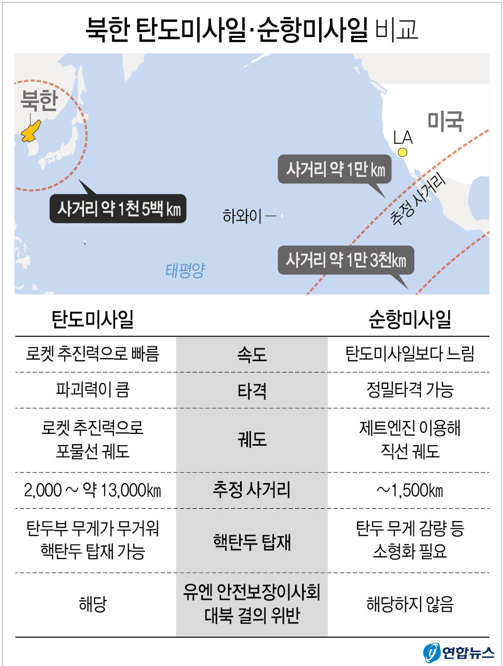 북한 탄도미사일·순항미사일 비교