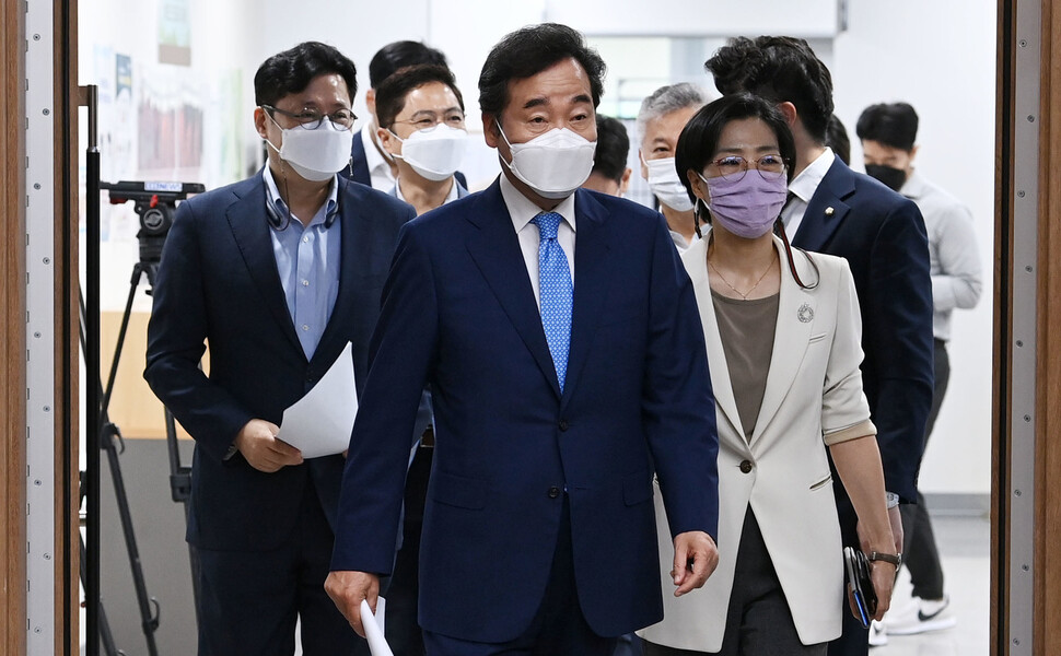 이낙연 전 더불어민주당 대표가 대선 경선 후보가 13일 오전 저출산 해결 공약을 발표하기 위해 서울 여의도 국회 소통관에 들어서고 있다. 연합뉴스