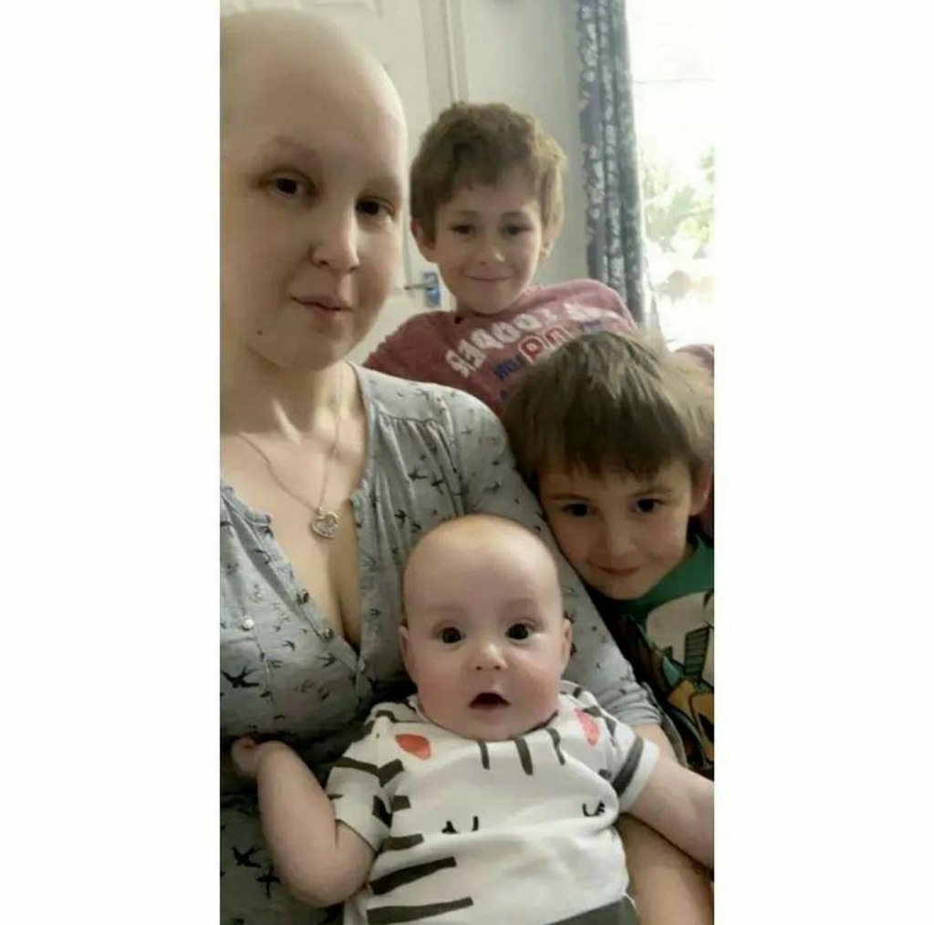 다리 절단하고 출산한 영국 엄마= 캐슬린 오즈본이 폐암 말기 판정을 받고 투병하며 세 아이와 함께 있다. 페이스북 갈무리.