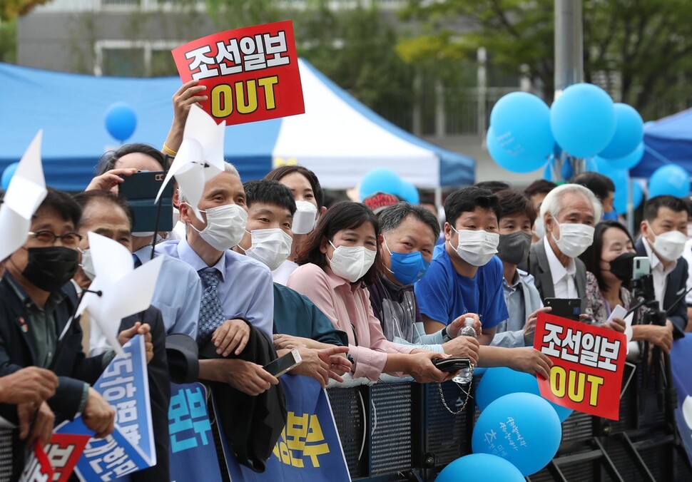 호남 경선 ‘장외전’도 후끈… ‘조선일보 OUT’ ‘지켜줄게’ 손팻말도