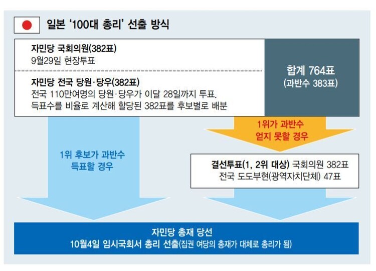 결선 투표에선 예상대로 국회의원 표가 승패를 갈랐다. 1차 투표에서 다카이치 사나에 전 총무상을 지지했던 호소다파 등 자민당 보수 주류 의원들의 표가 기시다 전 정조회장 쪽으로 몰리며 승부가 갈렸다. 일반 여론보다 당내 파벌 간 역학관계와 아베 전 총리의 힘이 강하게 작용한 셈이다.