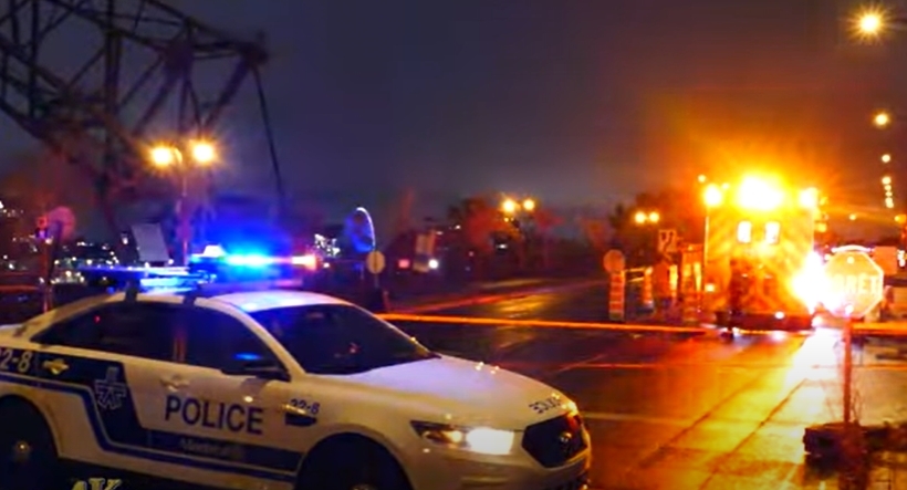 도심 추락한 경비행기 주변의 경찰= 지난 2일 캐나다 몬트리올에서 경찰들이 추락한 경비행기 사고 현장에 도착해있다.