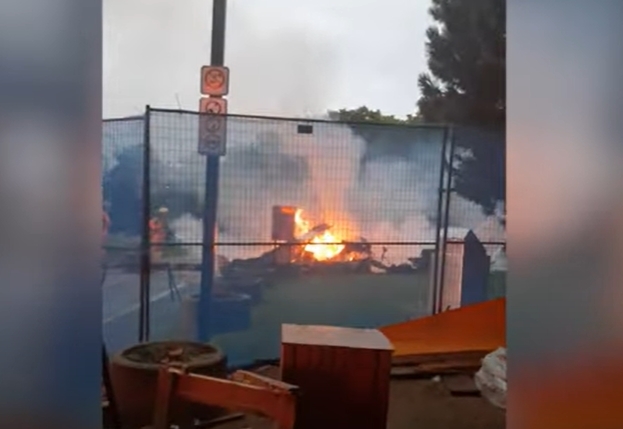 도심 추락한 경비행기= 지난 2일 몬트리올의 한 공원에서 소방대원들이 추락한 경비행기로부터 발생한 화재를 진압하고 있다.