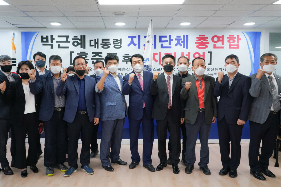‘박근혜 전 대통령 지지단체 총연합회’가 15일 국민의힘 대선 경선에서 홍준표 국민의힘 의원 지지를 선언했다. 홍준표 캠프 제공