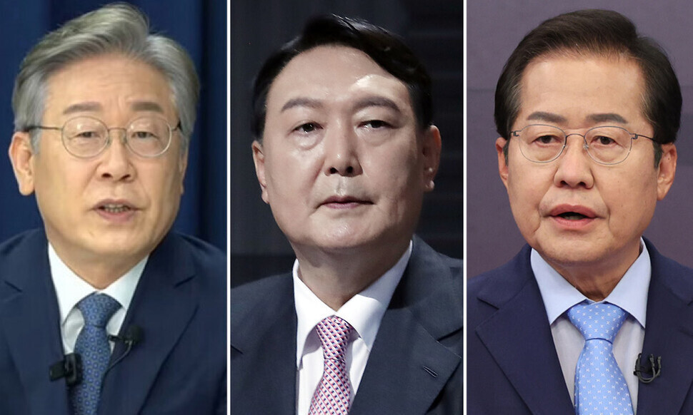 이재명 경기지사, 윤석열 전 검찰총장, 홍준표 의원.