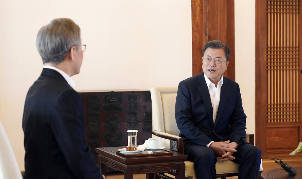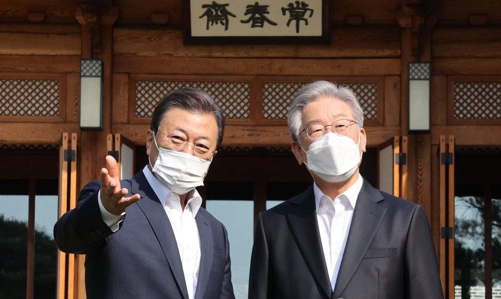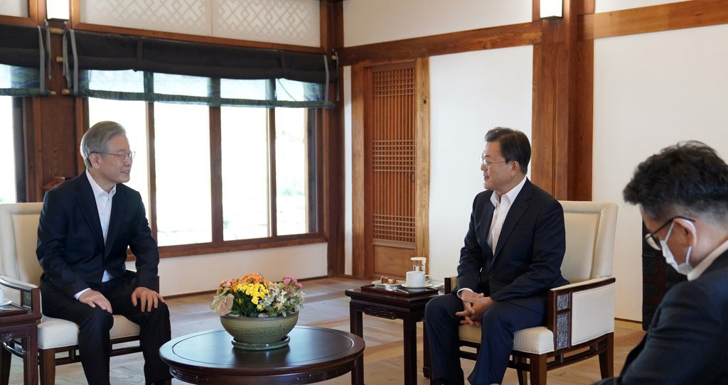 문재인 대통령과 더불어민주당 이재명 대선후보가 26일 오전 청와대에서 약 50분간 차담했다.