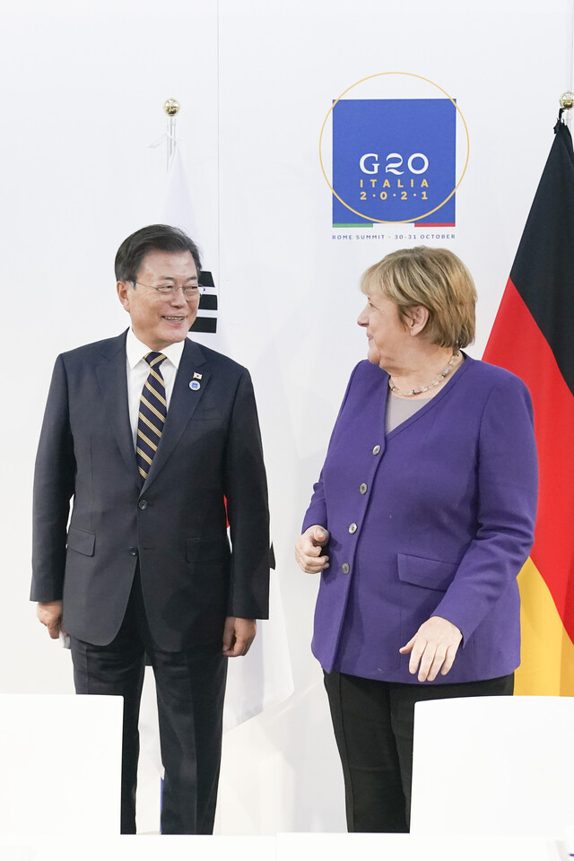 주요 20개국(G20) 정상회의 참석을 위해 로마를 방문하고 있는 문재인 대통령이 퇴임을 앞둔 앙겔라 메르켈 총리와 마지막 회담을 했다.