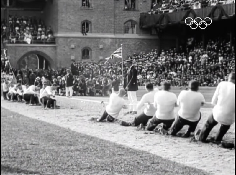 1912 스톡홀롬올림픽에서 열린 영국과 스웨덴의 줄다리기 경기 모습. 올림픽 유튜브 갈무리