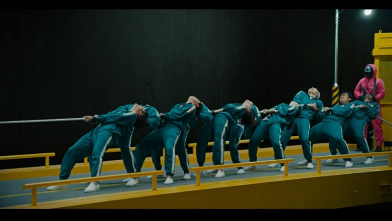 넷플릭스 오징어 게임의 줄다리기 장면.