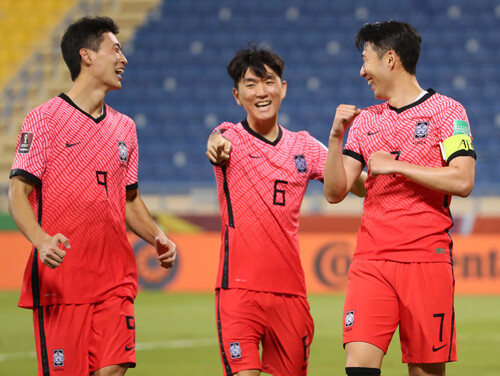 파울루 벤투 감독이 이끄는 한국 축구대표팀이 17일(한국시각) 카타르 도하의 타니 빈 자심 스타디움에서 열린 2022 카타르 월드컵 아시아 최종예선 A조 6차전에서 이재성(마인츠), 손흥민(토트넘), 정우영(프라이부르크)의 연속골로 이라크를 3-0으로 완파했다.