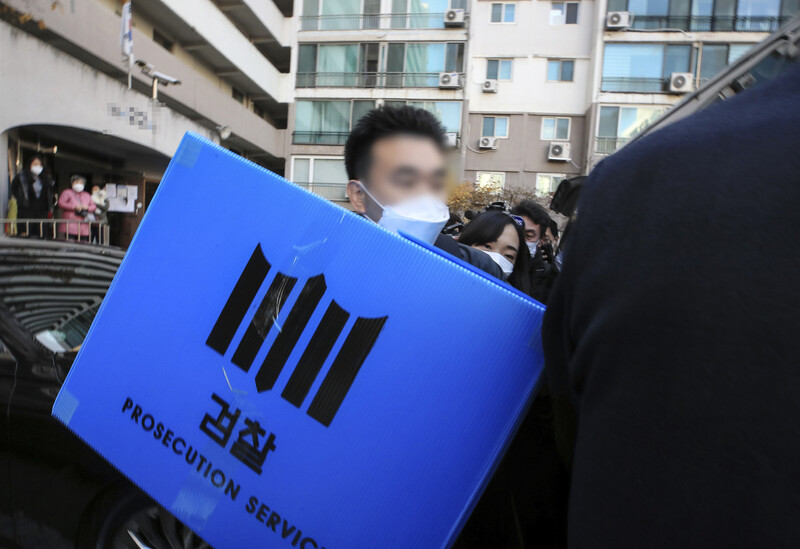 검찰이 17일 곽상도 전 의원의 자택 압수수색을 마친 뒤 압수물을 차로 옮기고 있다.