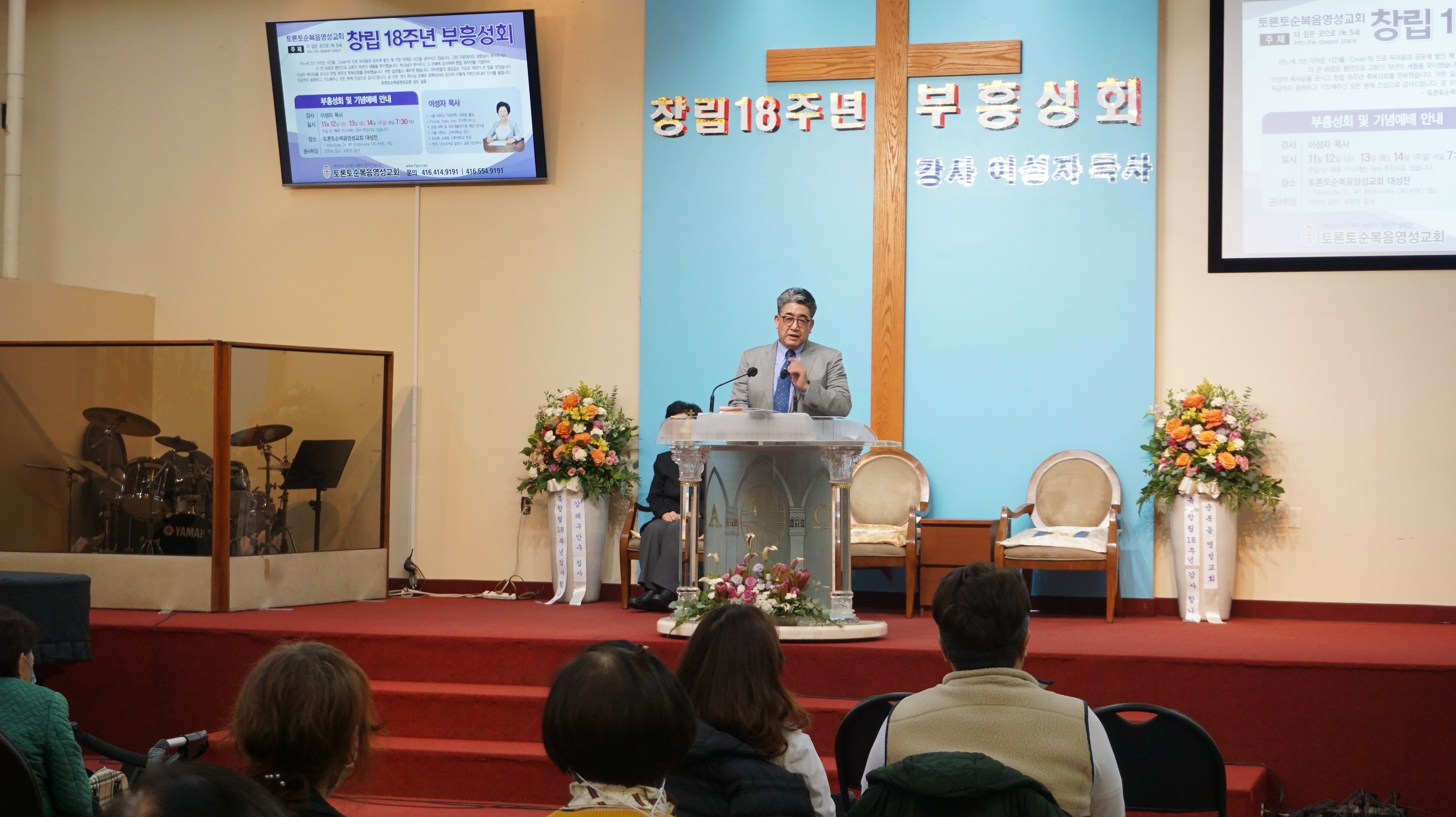 올해로 창립 18주년을 맞이한 토론토 순복음 영성교회(담임 김석재 목사: 1 Westside Dr., #1, Etobicoke, M9C 1B2)가 창립 18주년 기념 부흥성회를 이성자 목사(인터내셔널 갈보리교회 담임)를 강사로 11월12일부터 14일 주일까지 사흘간 개최했다. 14일 주일 2부 예배시간에는 전희숙·송원영 집사의 권사취임식과 서리집사 임명식도 가졌다.