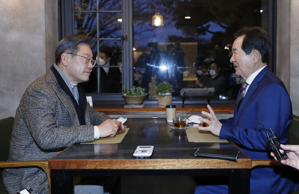 이 후보는 이날 오후 전주 한옥마을에 있는 음식점 ‘종로회관’에서 정 전 총리와 떡갈비 세트 메뉴로 만찬을 함께했다. ‘매타버스’(매주 타는 민생버스) 전북 방문 2박3일 일정 가운데 첫날 전북 출신의 정 전 총리를 만나 지역 지지층의 결집을 시도한 것이다.