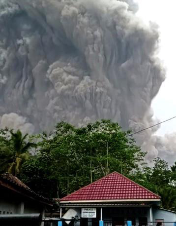 스메루 화산은 전날 분화를 시작해 수 ㎞ 높이에 달하는 거대한 화산재 구름을 발생시켰다.