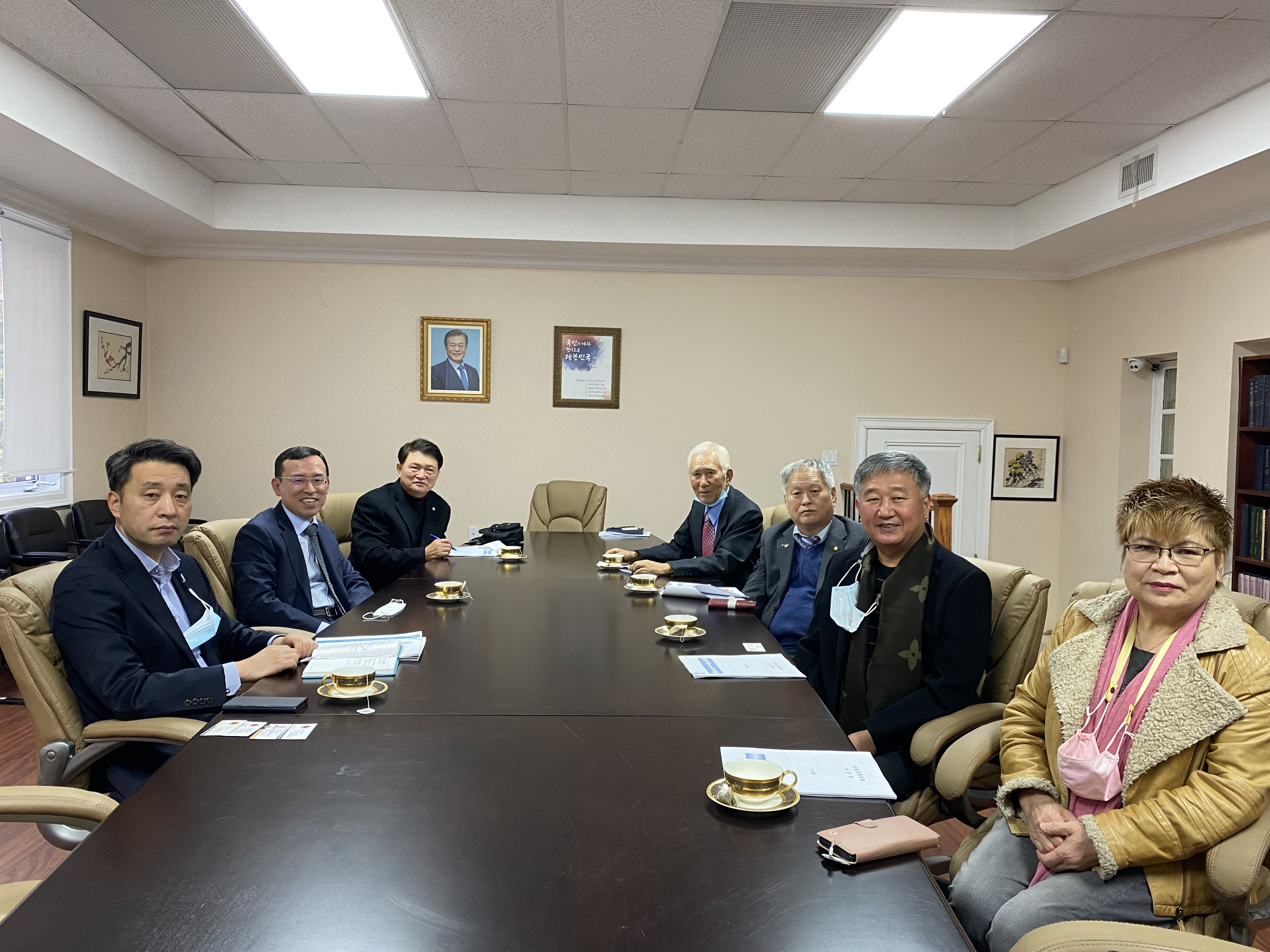 김홍양 회장 등이 총영사관에서 김득환 총영사를 만나고 있다.