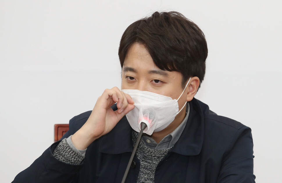 국민의힘 이준석 대표가 지난 21일 오후 국회 당 대표 회의실에서 기자회견을 열고 상임선대위원장 사퇴 의사를 밝히고 있다. 공동취재사진
