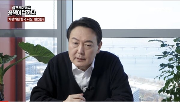 윤석열 국민의힘 후보가 유튜브 채널 <삼프로티브이(TV)>에서 경제 공약을 설명하고 있다. <삼프로티브이> 화면 갈무리