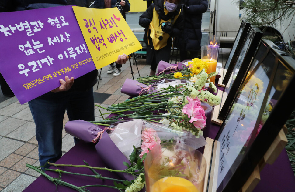올해 마지막 정기 수요시위인 이날 집회는 올해 세상을 떠난 일본군 성노예 피해자 할머니들을 추모하는 행사로 진행됐다.