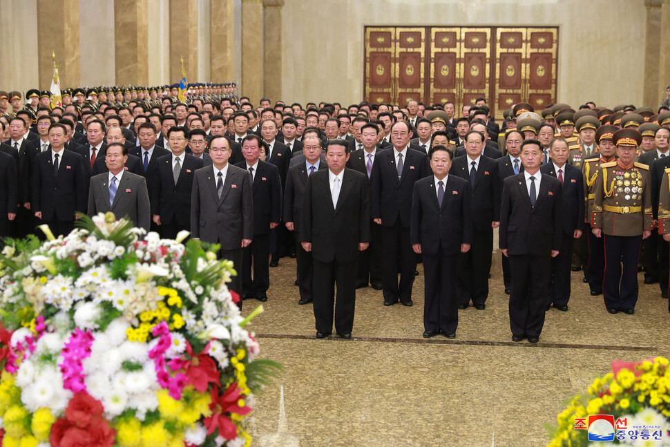 김정은 조선노동당 총비서 겸 국무위원장이 “새해에 즈음해 1일 금수산태양궁전을 찾으셨다”고 2일 <노동신문>이 1면 머리기사로 보도했다. 금수산태양궁전은 김일성 주석과 김정일 국방위원장의 주검이 있는 곳이다.
