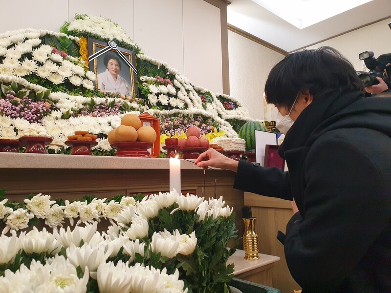 대통령선거 후보들의 발길도 이어졌다. 이재명 더불어민주당 후보는 이날 밤 8시20분께 빈소를 찾아 “세상 일 다 잊고 편안하게 영면하시길 바란다”고 추모했다. 앞서 오후 6시께에는 심상정 정의당 후보가 들러 “늘 거리에서 뵙던 어머님이 없어 허전할 것 같다. 온몸으로 실천하셨던 민주주의를 이어나가겠다”고 했다.