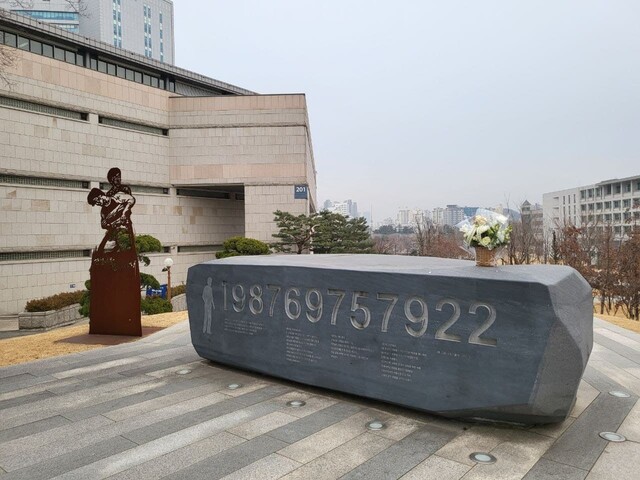 10일 오후 서울 서대문구 연세대 ‘한열 동산’. 노수석열사추모사업회에서 꽃을 올려놓았다.