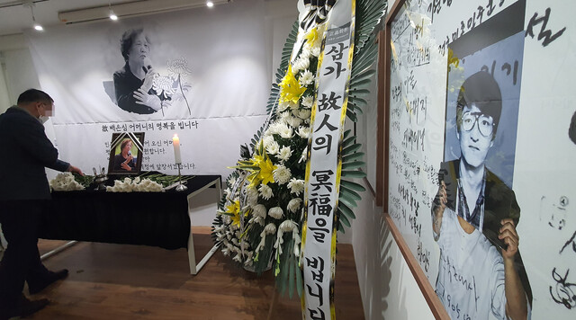 배은심 여사 서울 분향소 마련... 추모하는 시민들 방문 이어져