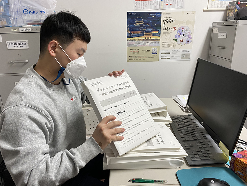 재외선거인 등록서류를 정리하는 선관위 직원