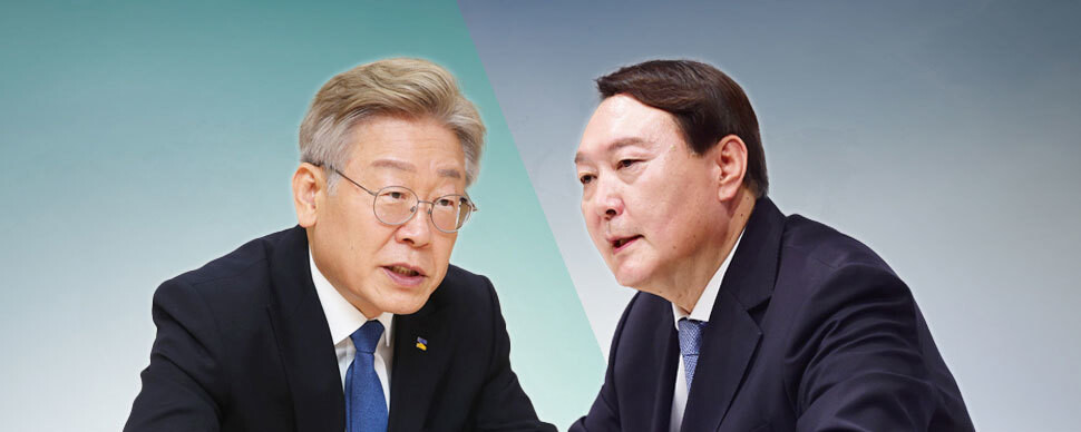여론조사업체 엠브레인퍼블릭이 <중앙일보> 의뢰로 조사해 18일 발표한 결과를 보면, 윤 후보 지지율은 35.9%, 이 후보 지지율은 33.4%였다. 칸타코리아가 <조선일보>와 <티브이(TV)조선> 의뢰로 조사해 이날 내놓은 결과도 윤 후보 32.8%, 이 후보 31.7%였다. 여론조사업체 넥스트리서치가 <에스비에스>(SBS) 의뢰로 실시해 내놓은 차기 대선 지지도 조사에선 이 후보 32.9%, 윤 후보 31.6%였다. 모두 오차범위 내 접전 양상이었다.(세 조사 모두 신뢰수준 95%, 표본오차 ±3.1%포인트. 자세한 내용은 중앙선거여론조사심의위원회 누리집 참조)