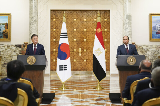 두 나라는 또 개발 협력도 강화하기로 했다. 문 대통령은 “한국은 이집트에 10억 달러의 이디씨에프(EDCF·대외경제협력기금) 한도를 새롭게 설정했다”면서 “한국의 개발 경험을 나누고 이집트의 교통·수자원 인프라 확충에 힘을 보탤 것”이라고 했다. 이어 기후위기 대응도 함께하기로 했다. 문 대통령은 “이집트는 올해 유엔기후변화협약 당사국총회(COP27) 의장국이다. 국제 사회의 기후대응 의지를 성공적으로 결집할 수 있도록 한국은 적극 협력할 것”이라고 했다.