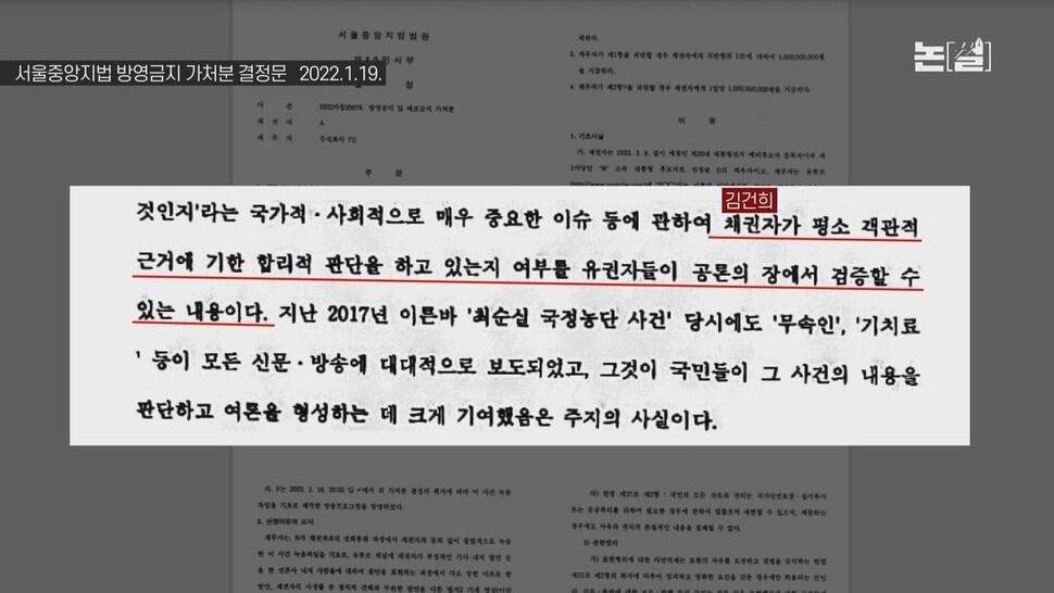 ‘국정농단’ 연상시키는 김건희 ‘7시간 통화’ 방송여부에 대한 법원 결정문