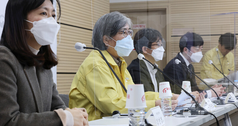 정은경 질병관리청장이 27일 오후 충북 청주시 질병관리청에서 열린 신종 코로나바이러스 감염증(코로나19) 변이 오미크론 특성 대응 방안 등 전문가 초청 특집 브리핑에서 질문에 답변하고 있다. 연합뉴스.