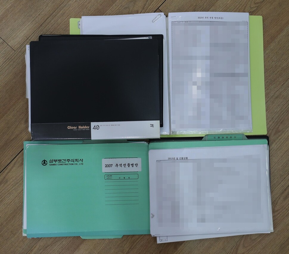 <한겨레>가 입수한 삼부토건 조남욱 회장의 명절 선물 명단 자료.