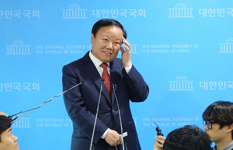 김재원 최고위원. 2020년 4월22일 당시 예결위원장으로서 기자회견을 하고 있는 모습. 연합뉴스