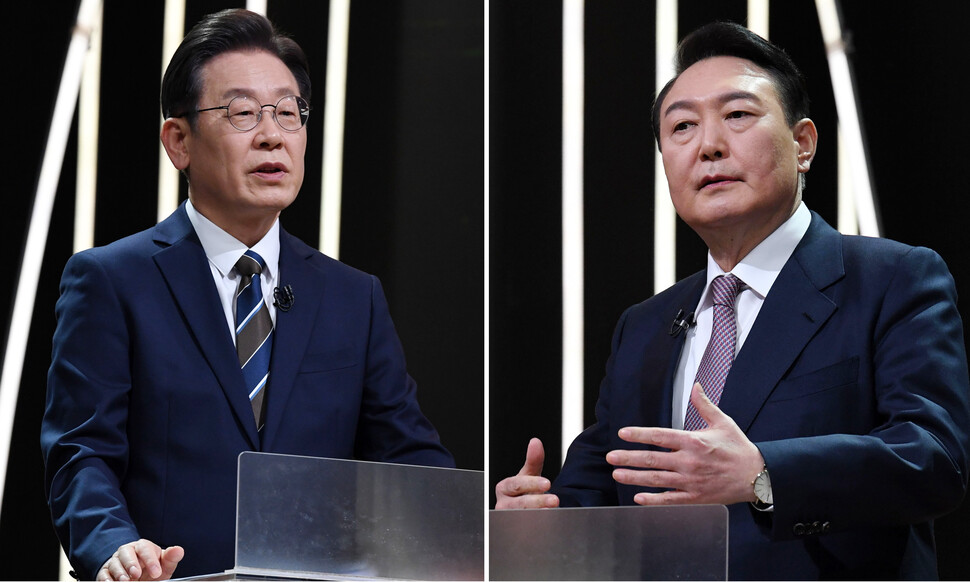 더불어민주당 이재명 후보를 둘러싼 '대장동 개발 의혹'부터 국민의힘 윤석열 후보가 제기한 사드(THAAD·고고도 미사일 방어체계) 추가 배치 주장 등을 주제로 2시간 동안 설전이 이어졌다.