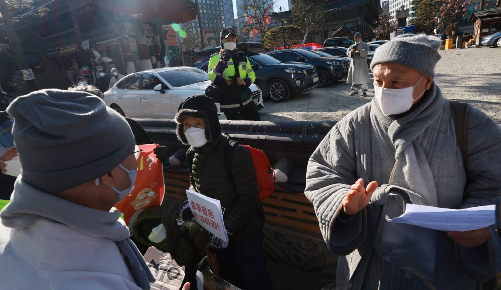허정스님 등 승려 3명은 승려대회를 일주일가량 앞둔 지난달 13일 서울 조계사 일주문 인근에서 신도 10여명과 함께 "코로나 시국에 국민을 불안하게 하는 승려대회를 취소하라"고 촉구한 바 있다.