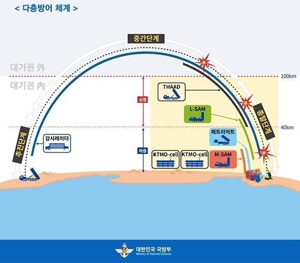 저고도, 중고도, 저고도로 나뉜 미사일 다층방어체계 개념도. 국방부