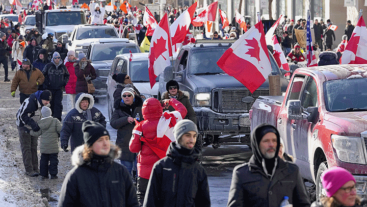 백신 반대 트럭시위대는 오타와 시내와 캐나다-미국 국경 통과도로를 2주 이상 막고 있다.