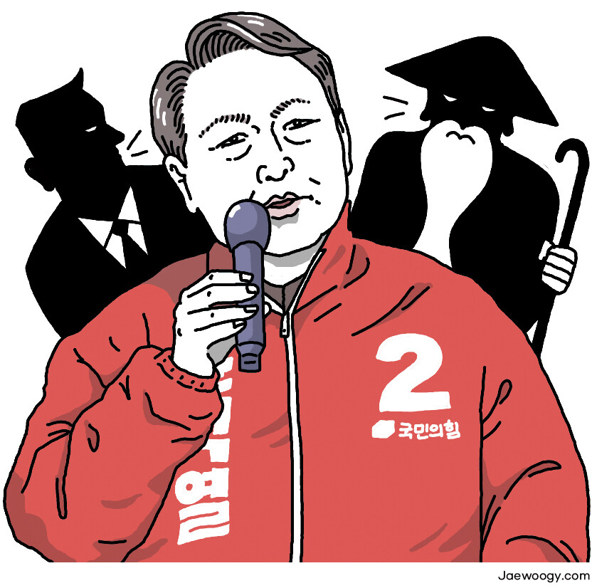 이번 대선에 나선 윤석열 국민의힘 후보 주변에도 비선 실세 이야기가 끊이지 않는다. 법사·도사로 불리는 이들이 한 부류다. 정부·여당이 ‘무주택자들이 집 가진 사람 횡포에 시달리게 해서 표를 얻으려고 일부러 집값을 올렸다’든가, ‘광주 시민들이 좋은 물건에 관심을 가져 투쟁 능력이 약화될까봐 복합쇼핑몰 유치를 막았다’든가, ‘탈원전 정책은 태양광 패널을 만드는 중국을 위한 것’이라든가, 논리가 황당한 말들을 후보의 입에서 나오게 만드는 신통한 능력을 가진 이도 있다.