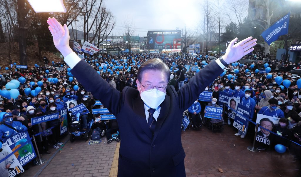 이 후보는 “가진 것 하나 없었던 비루한 소년공 출신이 여러분의 지지와 질타와 응원으로 이렇게 컸다”며 “모든 것이 국민 여러분 덕분이다. 여러분께서 주신 사랑 되돌려드릴 수 있도록 저에게 국민을 위해 일할 수 있는 기회를 달라. 민생을 챙기고 경제를 살리고 여성이 안심하고 존중받는 삶을 만들겠다”고 약속했다. 송채경화 기자