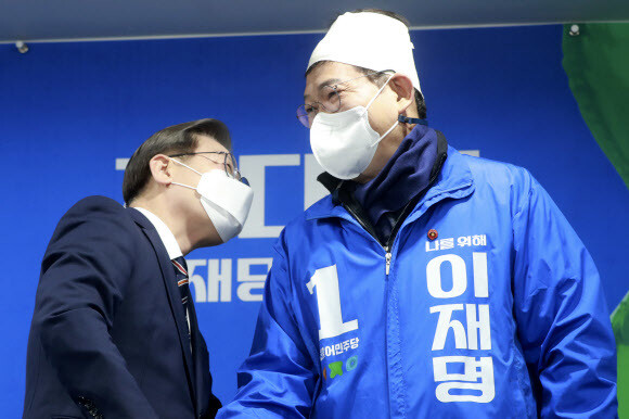 송 대표는 이번 대선에서 온갖 악재를 겪고 있다. 지난해 말 인대파열로 인해 한동안 휠체어를 타고 선거운동을 다녔고, 지난달 4일에는 코로나19 확진에 이어 부친상을 당해 선거운동을 전면 중단한 바 있다. 송 대표는 이재명 후보가 “본인의 액땜을 내가 다 해주는 거 같다”며 얼른 나으라고 위로를 건넸다고 전하기도 했다.