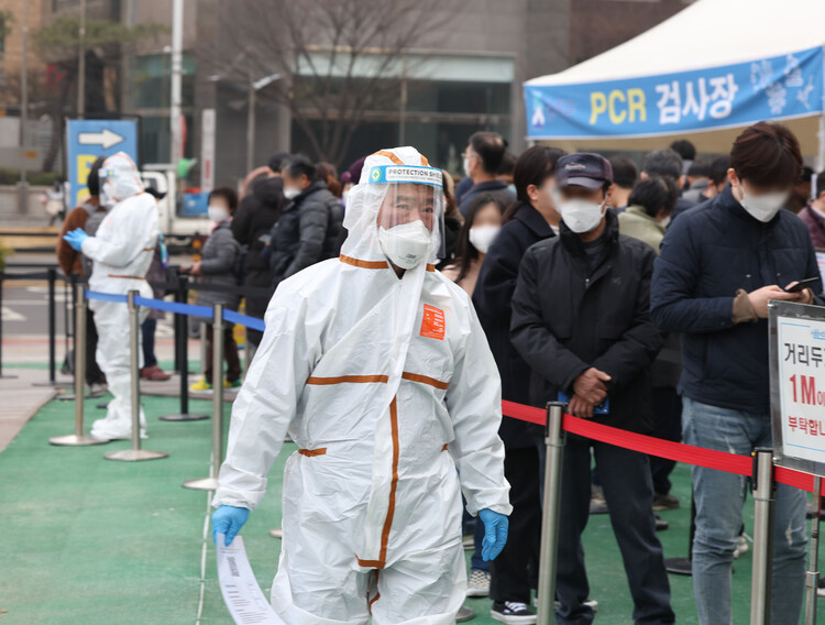 16일 오전 서울 송파구 송파구보건소 코로나19 선별진료소에서 시민들이 PCR과 신속 항원 검사를 받기 위해 대기해 있다. 연합뉴스.