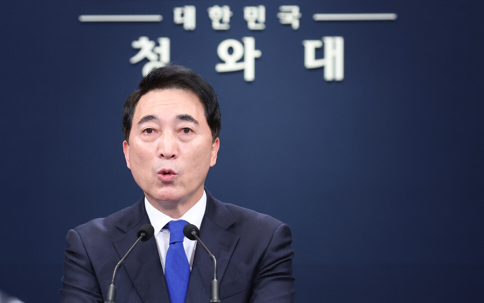 박수현 청와대 국민소통수석이 21일 오후 청와대 춘추관에서 윤석열 대통령 당선인이 추진 중인 청와대 집무실 이전 등과 관련 정부 입장 등에 대해 브리핑하고 있다. 연합뉴스