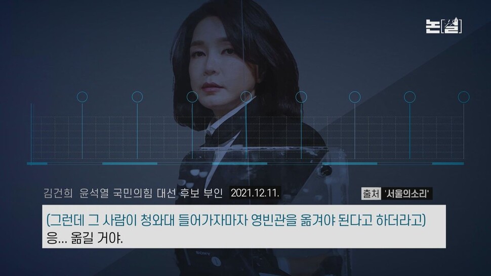 윤 당선자 부인 김건희씨가 <서울의소리> 이명수 기자와의 통화에서 ‘청와대 영빈관 이전’과 관련해 확고한 의지를 밝힌 대목도 새삼 다시 조명을 받았는데요.