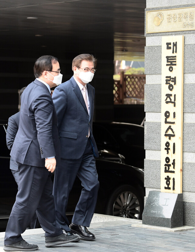 이날 국가안보실은 당선자 쪽과 정부 교체기에 외교안보 현안에 빈틈없이 대응하기 위한 협력을 지속해 나갈 예정이라고 밝혔다. 앞서 서훈 실장은 대선이 끝난 뒤인 지난 12일 윤 당선자를 찾아 미사일 시험발사 등 북한 관련 동향과 우크라이나 사태를 비롯한 외교안보 주요 현안을 브리핑한 바 있다. 이완 기자