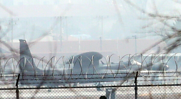 북한이 동해상으로 대륙간탄도미사일(ICBM)로 추정되는 장거리 탄도미사일 1발을 발사한 24일 고공정찰기 U-2S가 경기도 평택시 주한미공군 오산기지로 착륙하고 있다. 연합뉴스